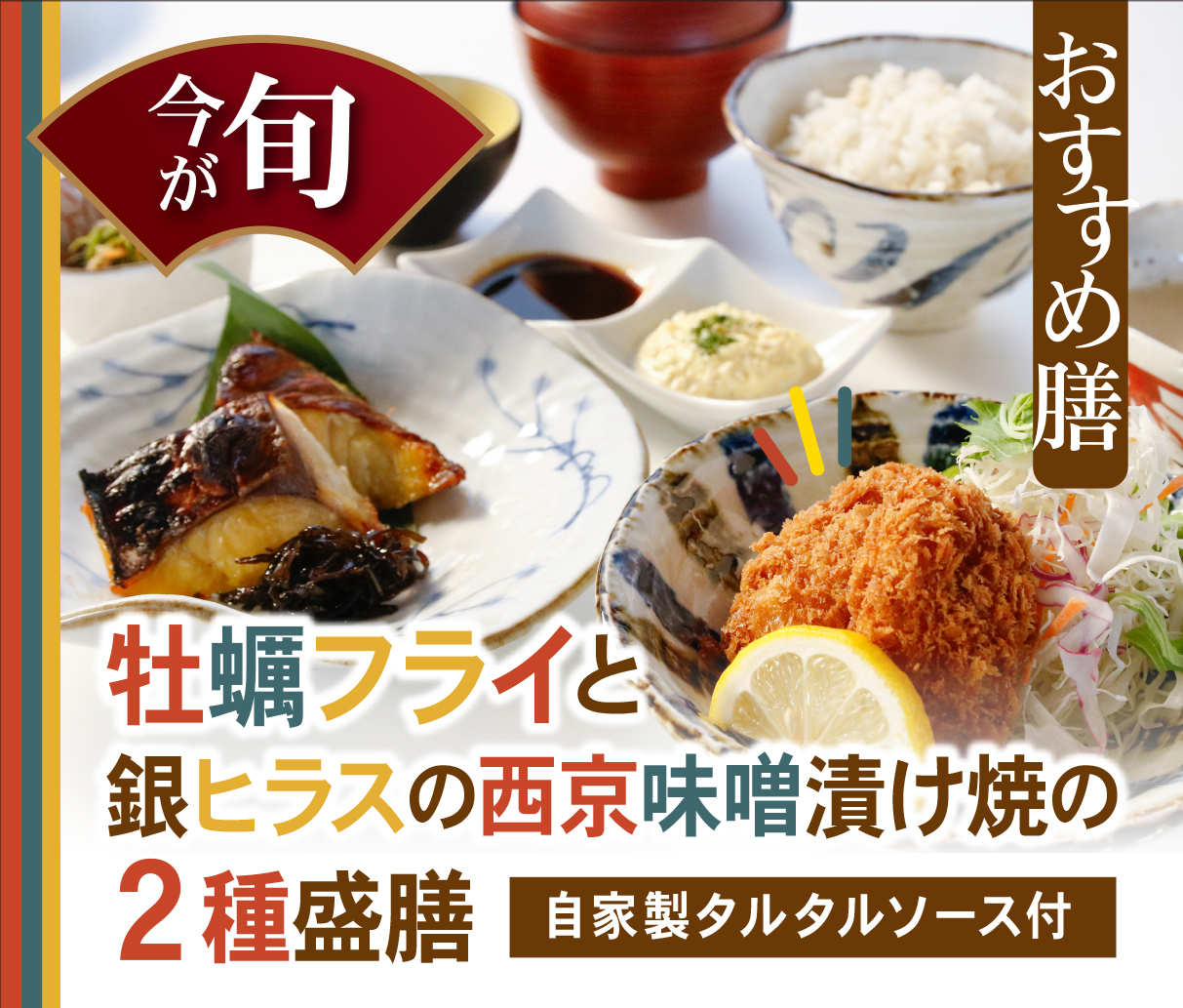【牡蠣フライとヒラスの西京焼き膳】が登場!