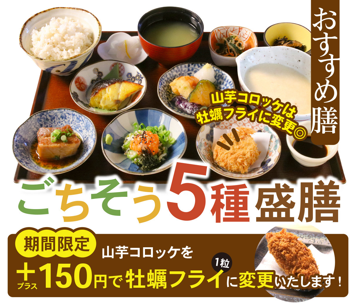 とろろや人気の【5種盛膳】がちょっと特別に!!