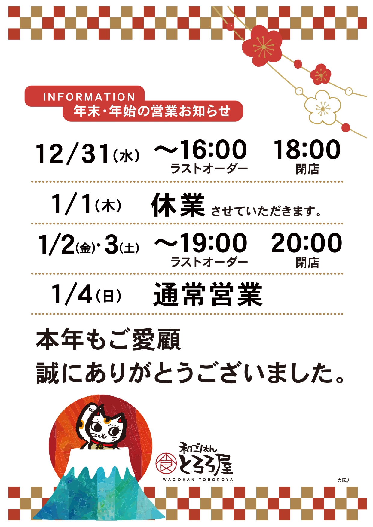 アトレヴィ大塚店 年末・年始営業のお知らせ