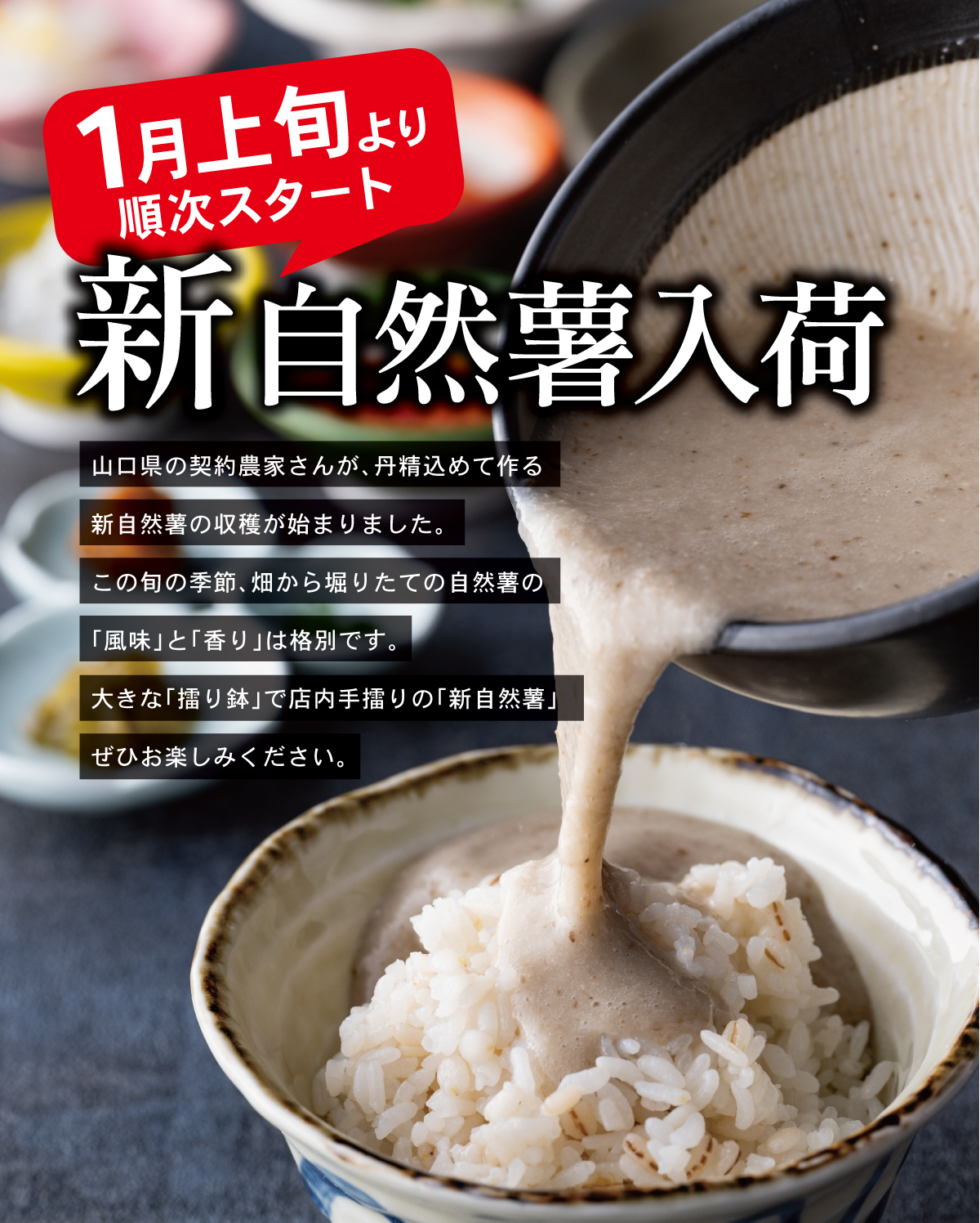※自然薯の提供は 1月上旬より順次開始 となります。