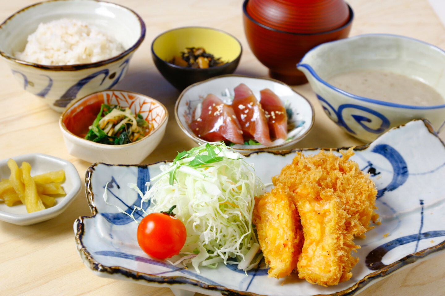 静岡県産の「カツオのお刺身」を副菜でご用意。
